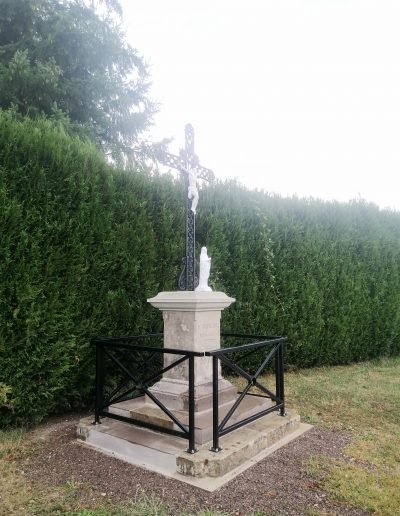 Croix d’Amblans et Velotte Aout 2020 Photos du projet Détails : { Réalisation d’un chapeau mouluré et de plusieurs marches en grès des Vosges. Finition charruée. Pose de l’ensemble des éléments. Toutes nos réalisations